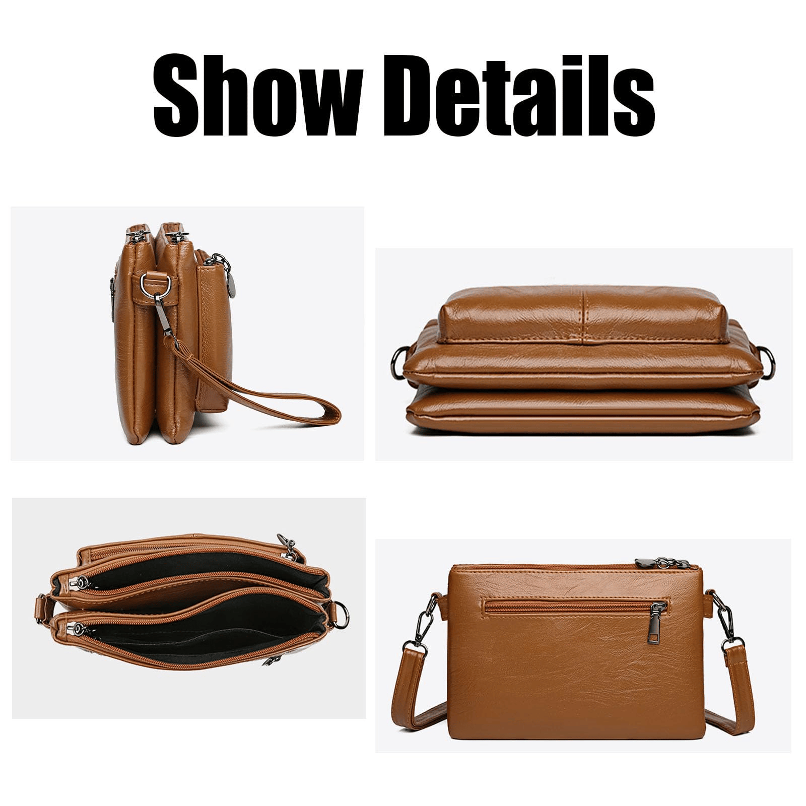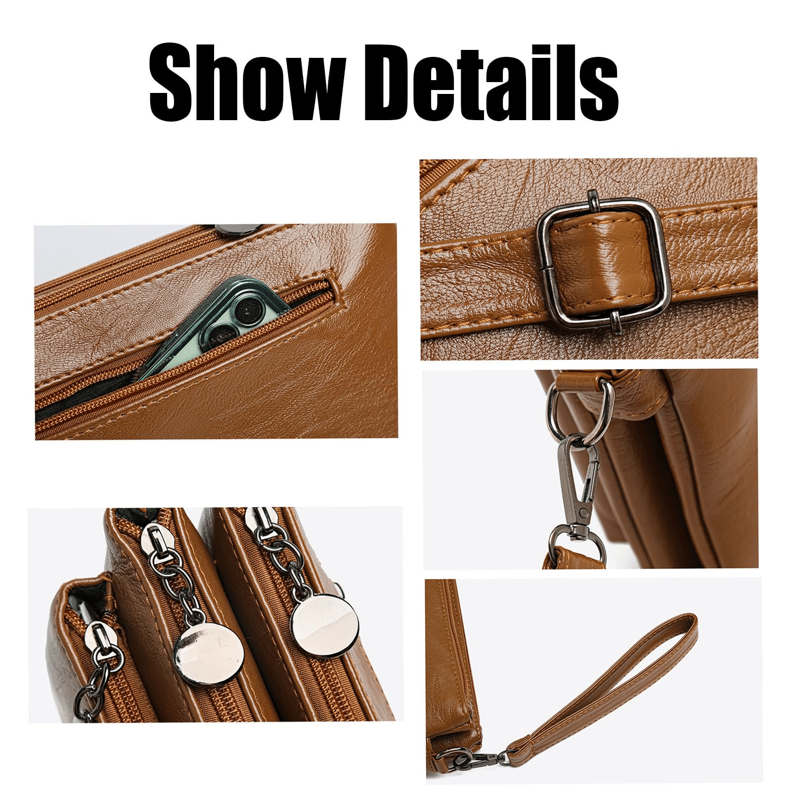 Can be used as a crossbody bag (with 1 detachable and adjustable shoulder strap), a clutch bag (with 1 detachable wrist strap), or a short shoulder bag. So, you can easily and conveniently change the straps to meet your exact requirements