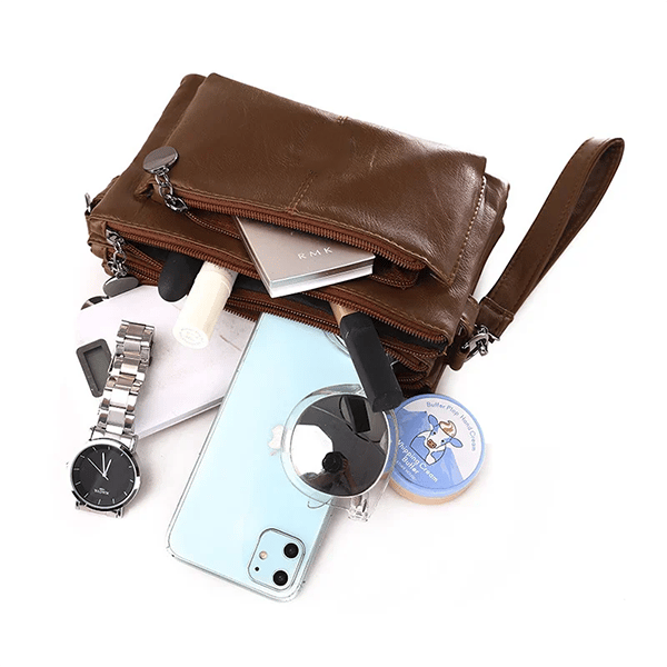 This genuine leather bag is great for carrying your cell phone, credit cards, cash, coin, and daily essentials.
